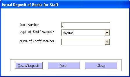 Issue / Deposit to Staff Members is done by their name, for ease of